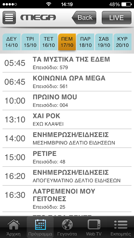 / Megatv App, Mega Tv - App to watch tv on android that works by means of lists.